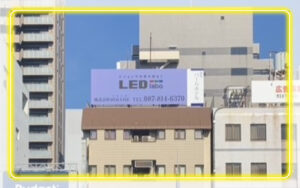 仏生山ハローズ南にあります、スクリーンにてCM動画を展開しています。